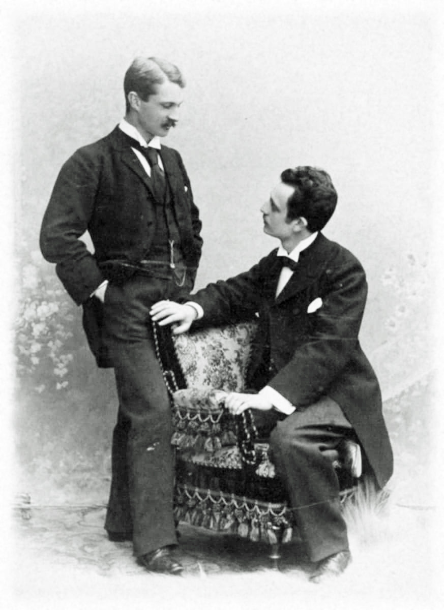 Meine Sammlung bietet dir eine einzigartige Reise durch die Entwicklung von Männerporträts, mit einem besonderen Fokus auf Haarschnitte, Bärte und die Mode jener Zeit. Diese Werke gewähren dir einen tiefen Einblick in die Männlichkeit der Vergangenheit, oft geprägt von einer subtilen, homoerotischen Ästhetik und der Darstellung von homoerotischen Paaren.