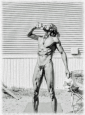 Ein sehr gut gelungener, muskulöser Körper auf noch exzellenteren Bildern verewigt. Meine Bildbearbeitung hat sich auf eine “Einrahmung” im Vintage-Stil beschränkt.