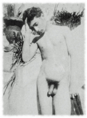 Im Mittelpunkt steht die Darstellung von Knaben und jungen Männern in idyllischen, oft mythologisch angehauchten Szenerien, die eine Mischung aus unschuldiger Schönheit und homoerotischer Spannung erzeugen. Die Fotografien von Wilhelm von Gloeden ➦, der in Süditalien arbeitete, und Wilhelm Plüschow ➦, sowie Vincenzo Galdi ➦, derenen Werke in Deutschland und Österreich bekannt wurden, fangen den Zauber einer längst vergangenen Epoche ein und werfen einen Blick auf die subtile Homosexualität, die zu jener Zeit häufig im Verborgenen existierte.